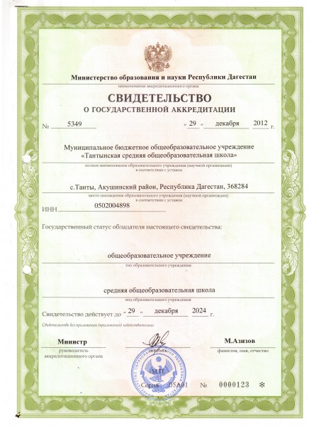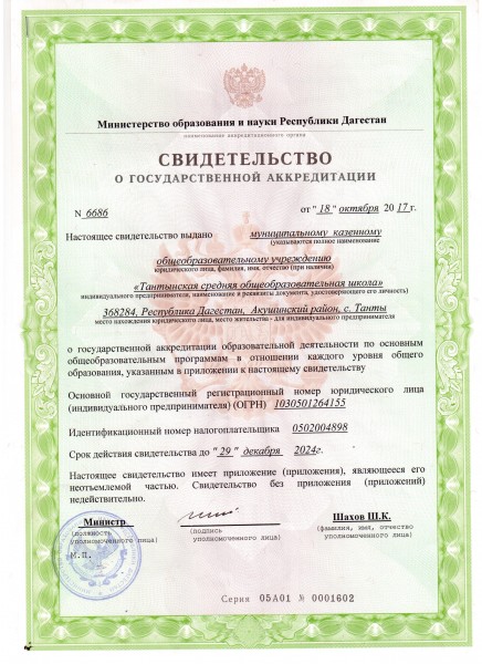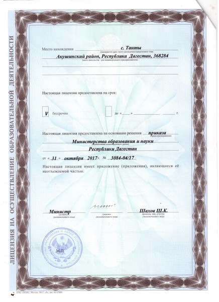 Адрес местонахождения образовательной организации* 368284, Республика Дагестан, Акушинский район, с. Танты